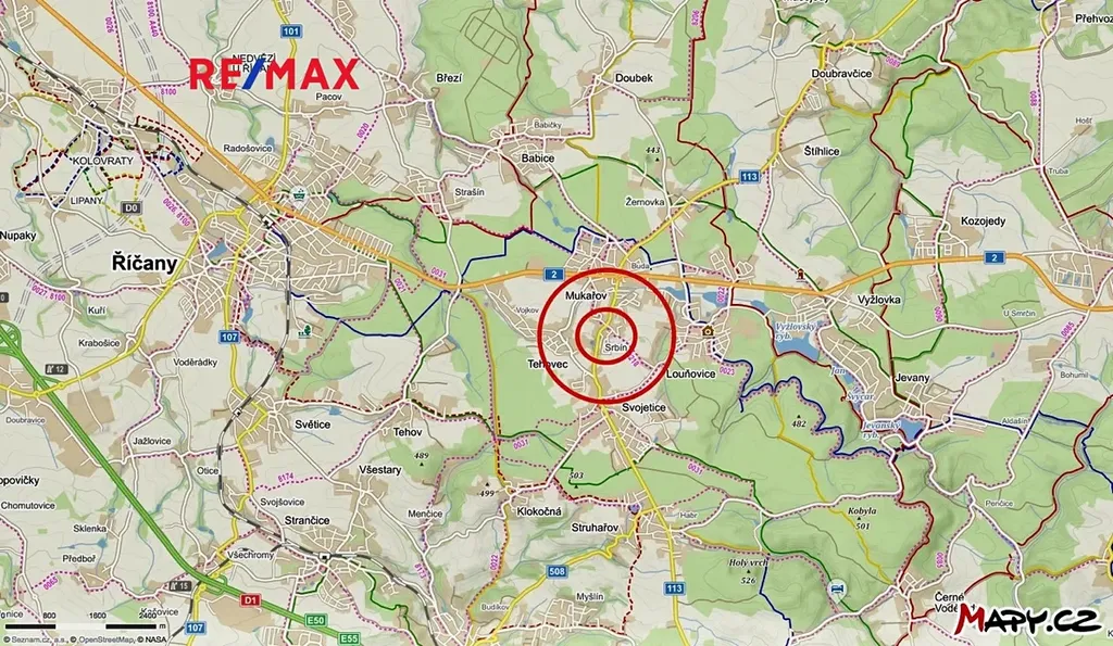 Dopravní dostupnost: Praha 21 km metro A i C, vlak Mnichovice i Říčany 8 km, Kostelec nad Černými lesy 8 km, vlak Úvaly 14 km.