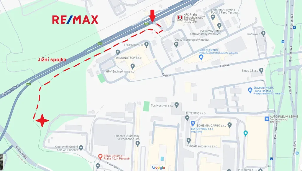 Pozemek je lichoběžníkového tvaru o rozměrech (cca 45 x 60 m) na rozhraní Hostivaře/Malešic/Štěrbohol, je rovinatý, oplocený, s posuvnou bránou, na povrchu s živičným recyklátem. Na pozemku se nachází zdroj vody s čerpadlem na naftový agregát. Elektřina bude brzy zavedena. Příjezd k pozemku po nezpevněné cestě z Jižní spojky.