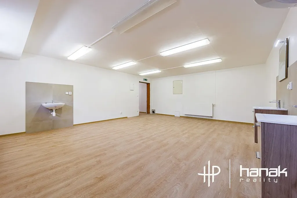 Předmětem nájmu je prostor o užitné ploše 35,26 m2 nacházející se v 1. podzemním podlaží, přístupný ze společné chodby. Společné prostory a hygienické zázemí tvoří šatna 4,99 m2, tech. a úklidová místnost 4,78 m2, pohotovostní WC s předsíní 2,65 m2, umývárna 3,92 m2.