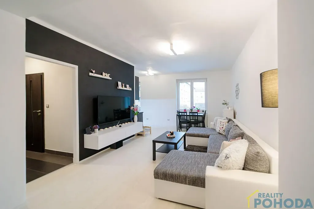 Byt je tvořen ze dvou obytných místností, hlavní místností je velký obývací pokoj s jídelním prostorem s přístupem do kuchyně. Kuchyňská linka je včetně vestavěných spotřebičů. Další místností je ložnice, dále prostorná vstupní chodba, koupelna s vanou a toaletou. Součástí bytu je technická místnost s vlastním plynovým kotlem.
