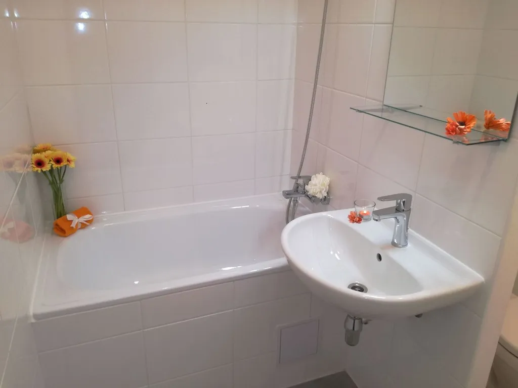 - koupelnu s vanou a umyvadlem, přičemž toaleta je chytře oddělena přepážkou,