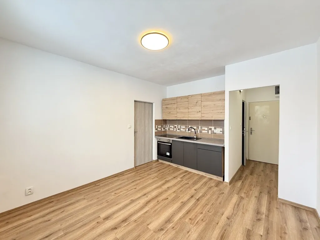 Byt se nabízí nevybavený. Kuchyně disponuje elektrickou troubou, varnou deskou a digestoří. Obývací část je nezařízena. Ložnice je také nezařízena. V koupelně je sprchový kout, umyvadlo a toaleta.
