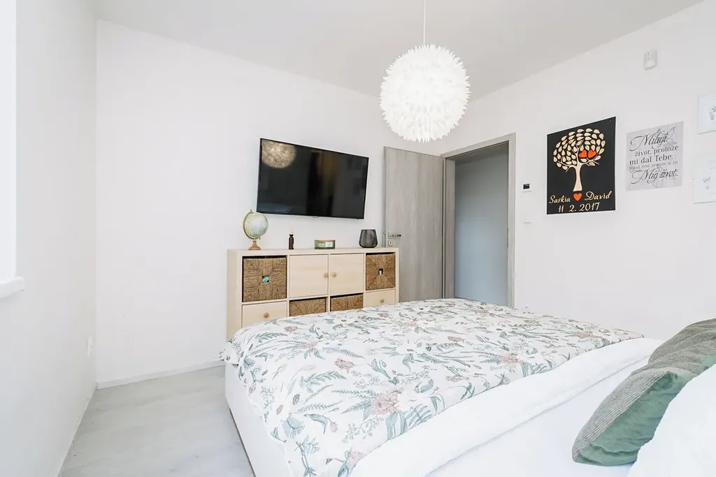 Dispozice je praktická a poskytuje dostatek soukromí i úložných prostor.
