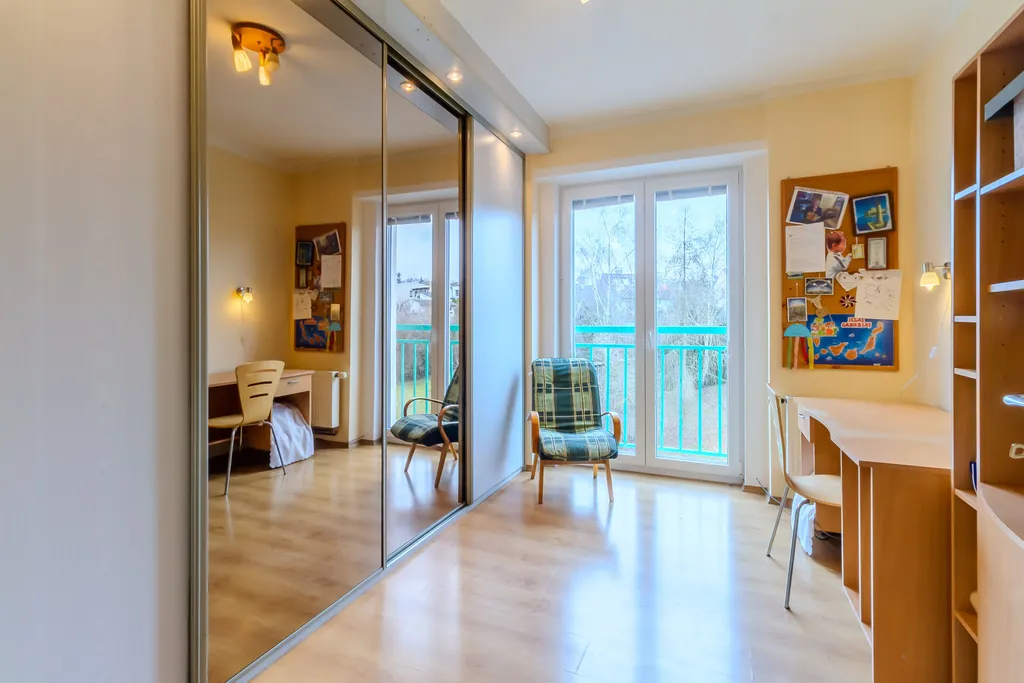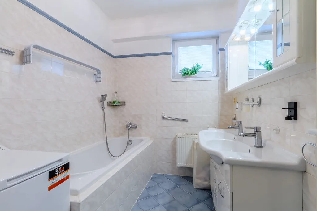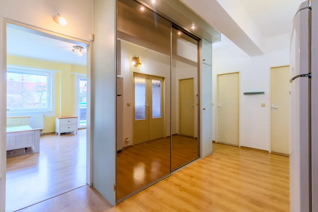 Byt nabízí tři samostatné pokoje – ložnici, dětský pokoj a pracovnu (ideální home office), takže pohodlně funguje i pro větší rodinu nebo kombinaci bydlení a práce z domova. Velkým plusem jsou dvě koupelny + samostatné WC, což výrazně zvyšuje komfort každodenního fungování.