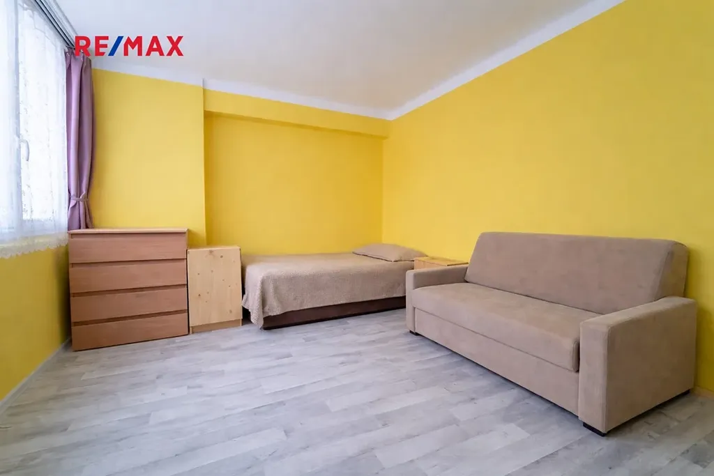 Bytová jednotka 1+1, po rekonstrukci (elektřina, odpady, sociální zařízení), se nachází ve zvýšeném přízemí z 12 pater. Dispoziční řešení: kuchyň, místnost, chodbička s úložným prostorem a koupelna s toaletou. Součástí tržní ceny je kuchyňská linka včetně spotřebičů a vybavení v koupelně s toaletou. Po ploše bytu bylo položeno PVC a dlažba.