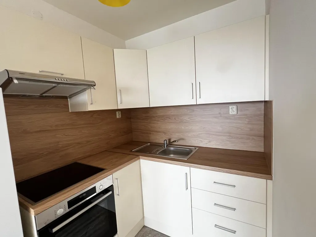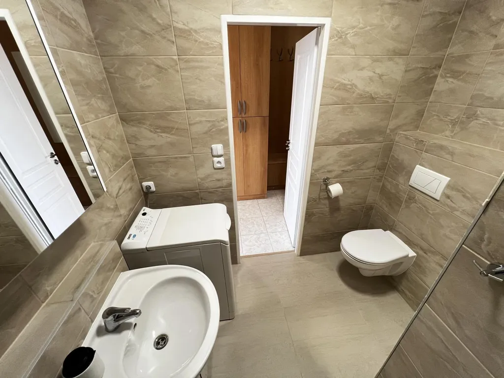 V bytě je úplně nová kuchyňská linka se sporákem, velká kombinovaná lednice a v koupelně najdete pračku. Koupelna je nová, moderní, s vanou a toaletou ideální na večerní relax po práci.