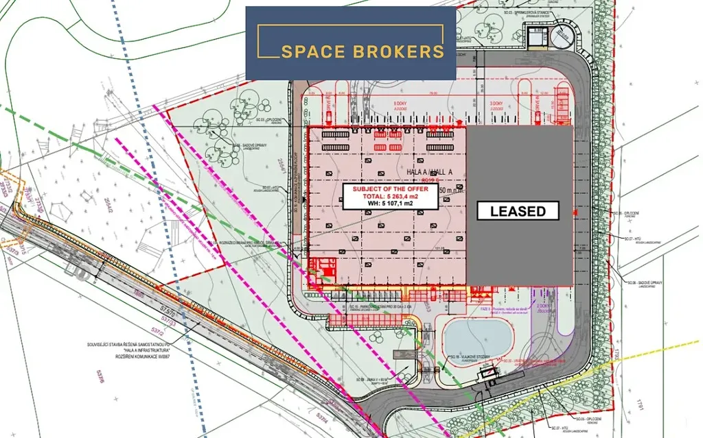- 5.100 m2 skladových prostor s možností dělení jednotky na polovinu