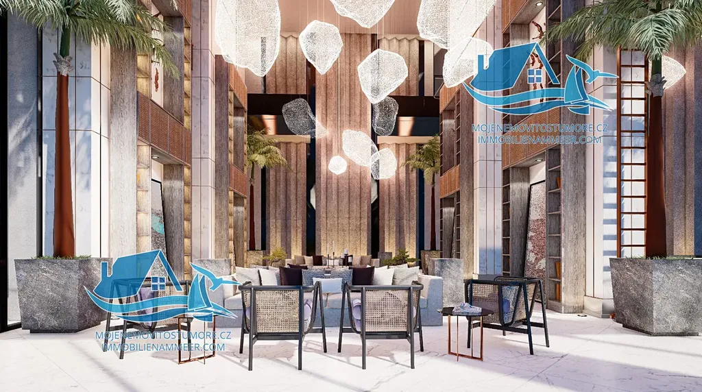 Jelikož infrastruktura ( obchody, restaurace, kavárny, bary , lázně, atd) sahá až do třetího nadzemního podlaží je výhled na moře ze všech jednotek projektů.