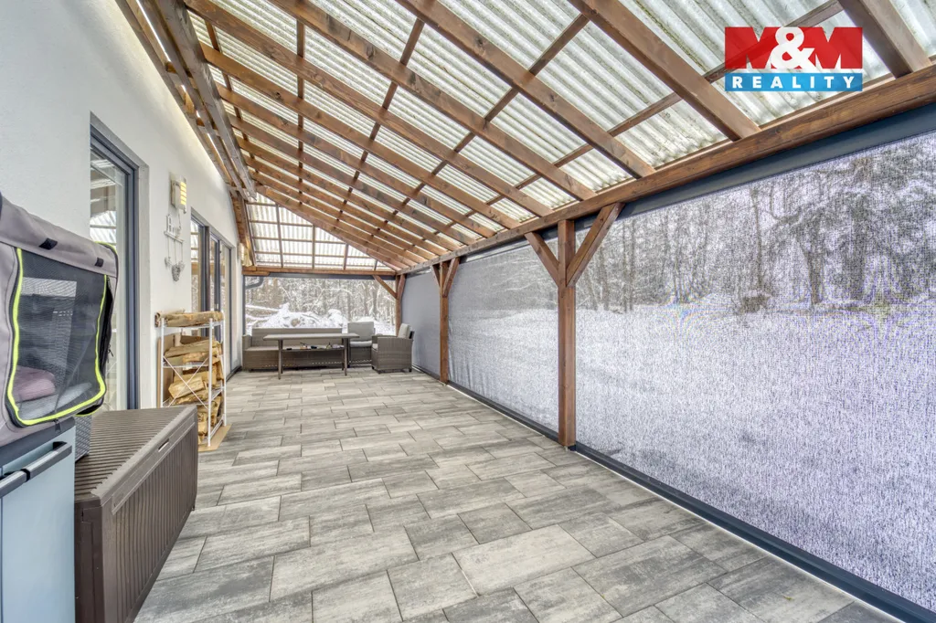 Naízíme jedinečnou příležitost pronajmout si samostatně stojící rodinný dům v klidné části obce Trstěnice pouhých 5 minut od Mariánských Lázní. Dřevěná novostavba bungalovu o dispozici 3+kk s prostornou zahradou za domem nabízí klid venkova i perfektní dostupnost do blízkého Německa. Potěší vlastní příjezdová cesta s car-portem na 2 vozy, pergola s elektrickým zavíráním zástěn sloužící jako zimní zahrada nebo krbová kamna, která zajišťují příjemnou atmosféru nejen v zimní večery. Nemovitost prošla velmi nedávno lehkou rekonstrukcí a je připravena k nastěhování od 16.3.2026. Bude k dispozici částečně vybavená, včetně lednice. Dům je vytápěný elektrickým podlahovým vytápěním, o ohřev vody se stará boiler. Voda i kanalizace jsou obecní. Nájemné činí 21 000Kč/měs. + voda 1500Kč/měs. Elektřina (cca 4000/měs.) se převádí na nájemníka. Vratná kauce ve výši 3 nájmů, provize RK jeden nájem. Tak neváhejte a nenechte si utéct Vaše vysněné bydlení v novém.