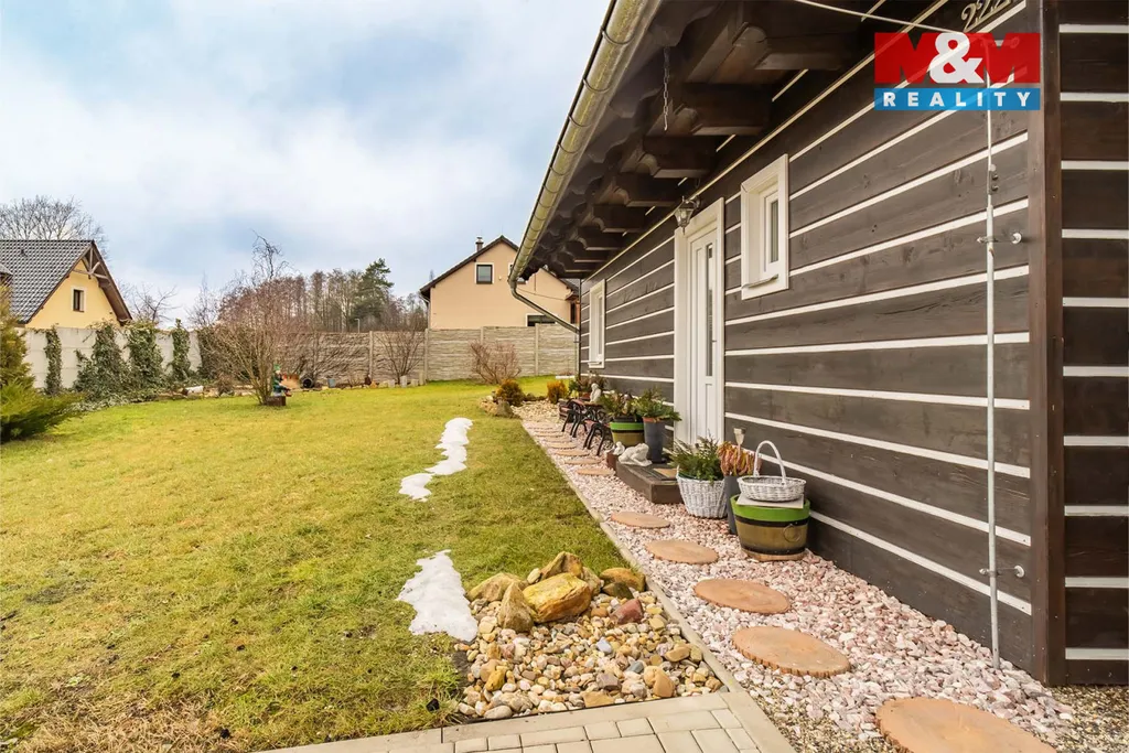 Dům stojí na prostorném rovinatém pozemku o velikosti 1 512 m² s udržovanou okrasnou zahradou a terasou o 15 m², ideální pro letní posezení. Je napojen na veřejný vodovod i kanalizaci a k dispozici je také nádrž na dešťovou vodu. Velkou výhodou je také parkovací stání, které je zastřešené a další dvě parkovací místa přímo na pozemku, kam vjedete díky elektricky ovládané bráně. Okolí nabízí klid, přírodu a zároveň dobrou dostupnost. Přesvědčte se o jedinečnosti této nabídky na prohlídce, budeme se na vás těšit.