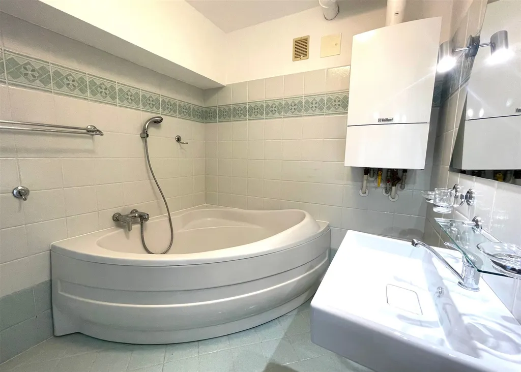 V bytě se nachází obývací pokoj s plně vybaveným kuchyňským koutem (lednice, mrazák, myčka, varná deska, horkovzdušná trouba) a lodžie, ložnice, vstupní hala, koupelna s rohovou vanou, pračkou a v rámci koupelny je oddělené WC. Schodištěm z obývacího pokoje je přístupný další obytný prostor a v bytě se dále nachází dvě praktické komory. Byt je částečně vybaven, zůstávají dvě vestavné skříně a pohovka dle dohody. Ústřední vytápění a ohřev vody je na plyn (kondenzační kombi kotel), okna plastová izolační skla, interiérové dveře dřevěné, vstupní dveře bezpečností, na podlahách je vinyl – altro, keramická dlažba a laminátová plovoucí podlaha. Do bytu je zaveden internet, a dále možnost připojení UPC.