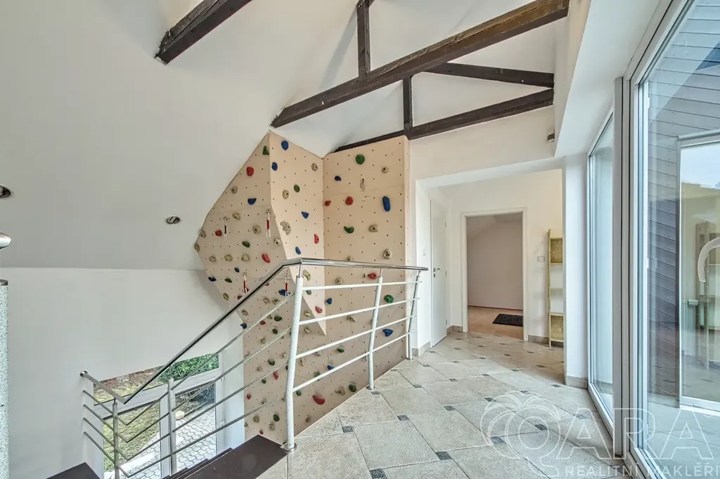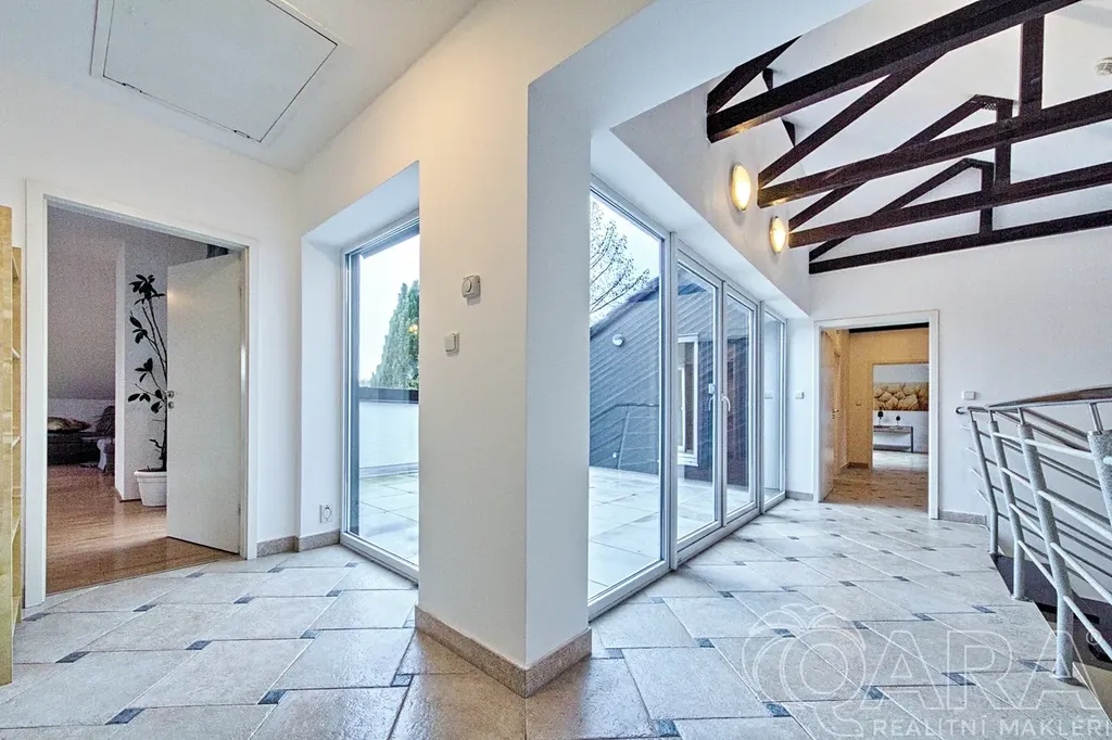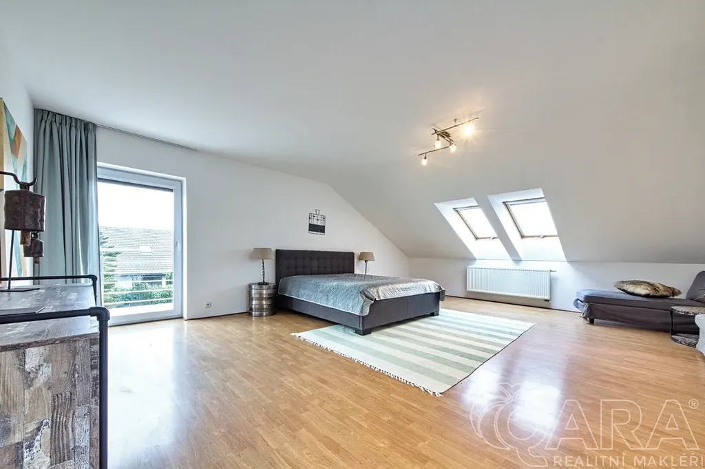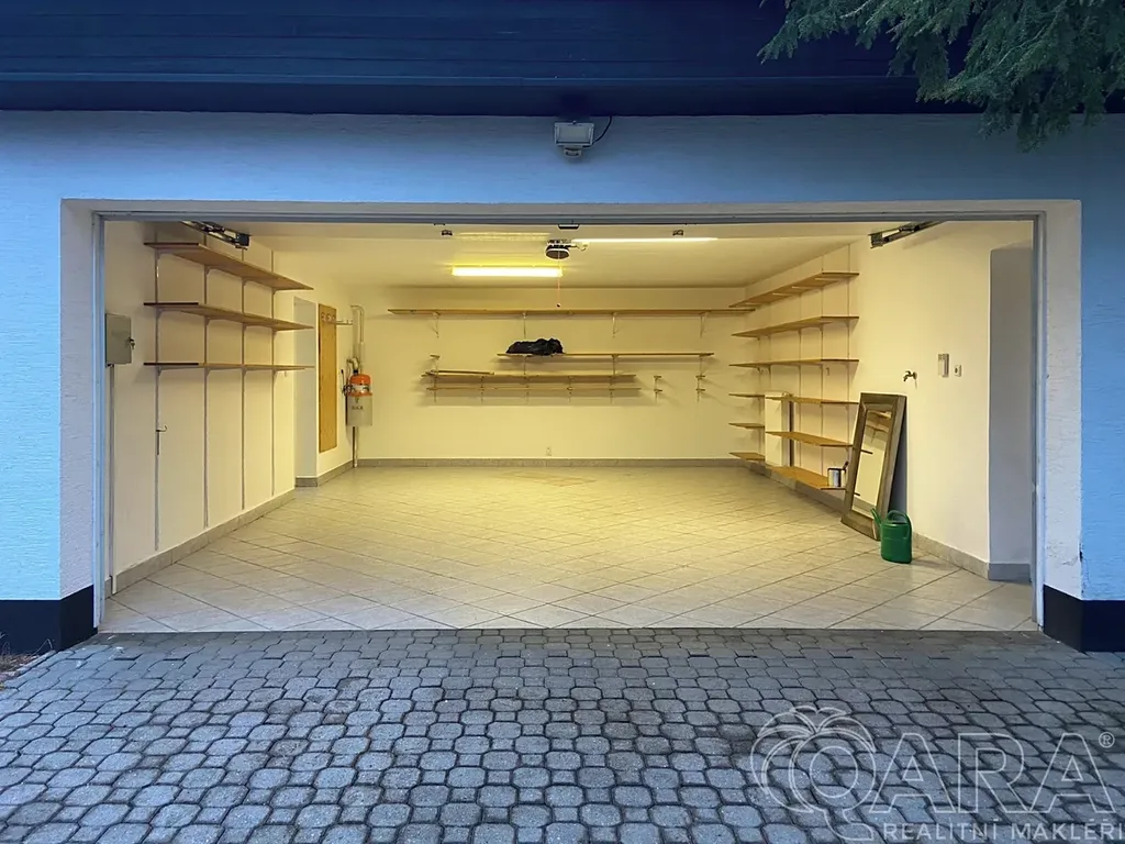 Zázemí: dvojgaráž + další parkování na pozemku, mnoho vestavěných šaten a úložných prostor.