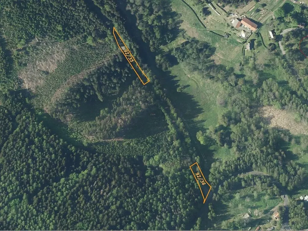 samostatné pozemky, které jsou součástí lesní komunikace. V katastru nemovitostí jsou vedeny jako