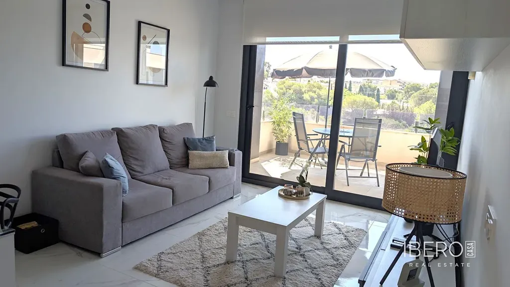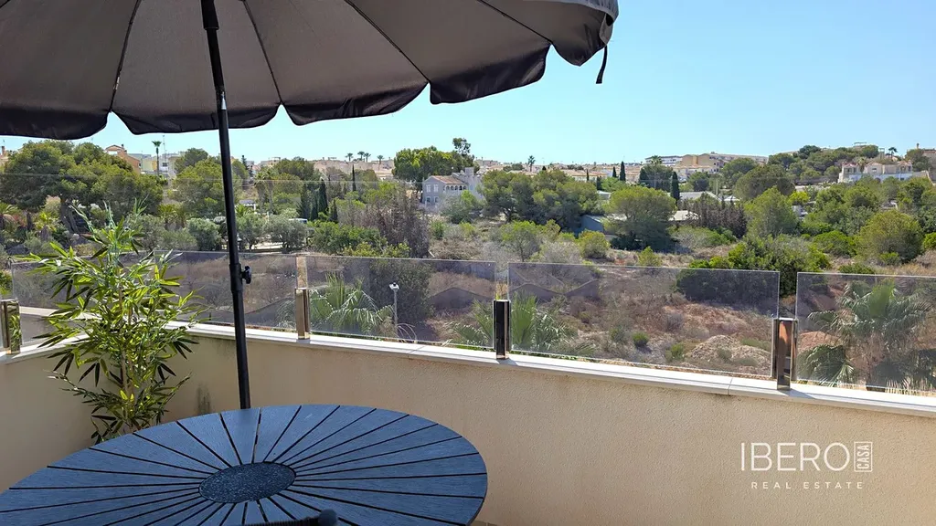 Villamartin Pau 26 Corner Top Floor Modern 2 bed 2 bath Penthouse for sale with panoramic views of the countryside and to the communal pool and Gardens located in Amanecer VI with secure parking and lockup storage room.