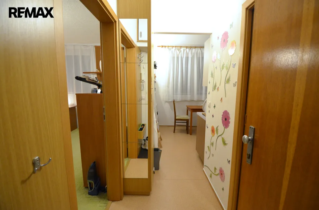Byt se nachází ve 4. nadzemním podlaží revitalizovaného domu s výtahem. Celková plocha činí přibližně 32 m² a dispozice 1+1 nabízí samostatný pokoj, oddělenou kuchyni, koupelnu s WC a předsíň. Součástí bytu je také menší balkon a sklepní kóje, která poskytuje další úložný prostor.