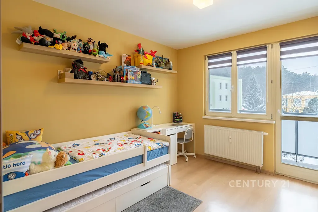 Ložnice (12 m²) a dětský pokoj (12 m²): Oba pokoje mají vlastní vstup na samostatnou lodžii (každá 3 m²), což je unikátní bonus.