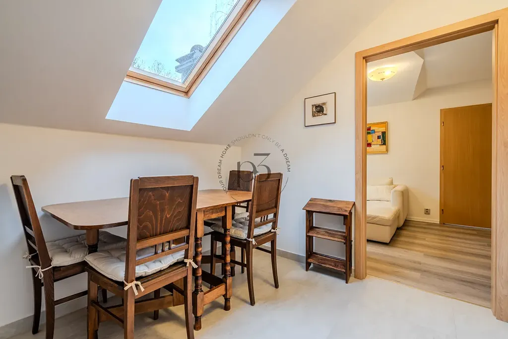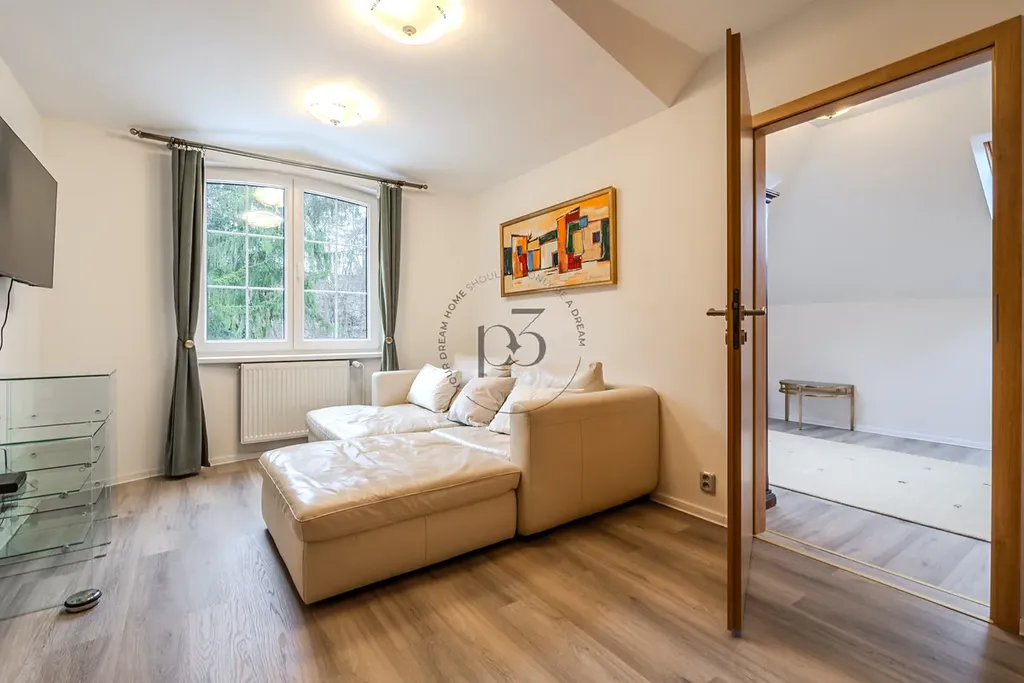 Dovolujeme si Vám nabídnout k pronájmu podkrovní byt 2+1 v samostatné části rodinného domu, ve velmi klidné lokalitě s krásným výhledem do zahrady. Tento byt je situován v prvním patře a poskytuje užitnou plochu 69 m², která nabízí dostatek prostoru pro pohodlné bydlení v oblíbené lokalitě Prahy- Kunratice.