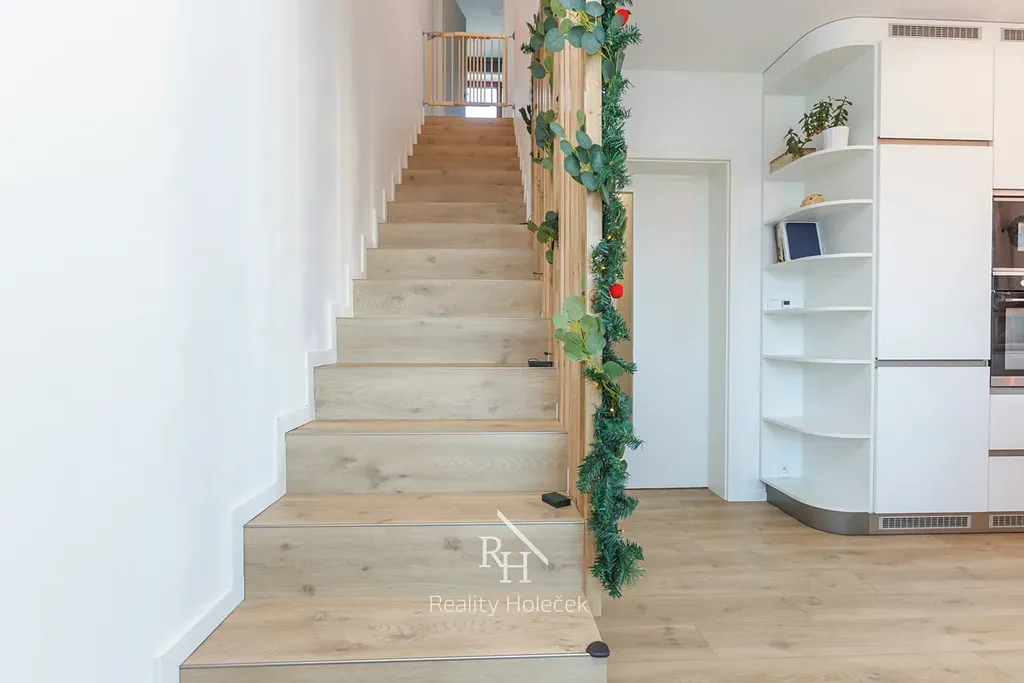Přízemí je připravené pro společný rodinný život – velký obývák s kuchyní je srdcem bytu a přirozeným centrem rodiny. Pracujete na home office? Pak Vám přijde vhod pracovna, která může posloužit i jako pokoj pro hosty. V patře pak najdete soukromé pokoje, druhou koupelnu a šatnu, kterou jistě ocení Vaše drahá polovička.