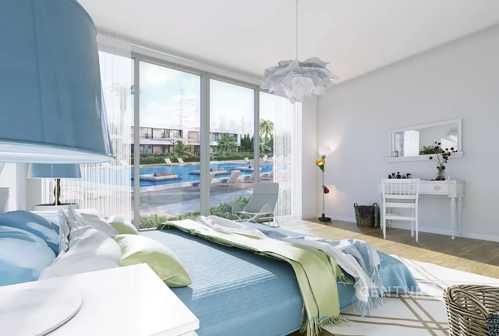 Krásné studio v luxusním ekowellness komplexu 1+kk, kde najdete wellness centrum. Areál se nachází na východní části severního Kypru v Bahçeli v Kyrenia. Apartmán má prostorný obývací pokoj s moderně vybavenou kuchyní a jídelním koutem, koupelnu, terasu s výhledem do zahrady a parkovací místo.
