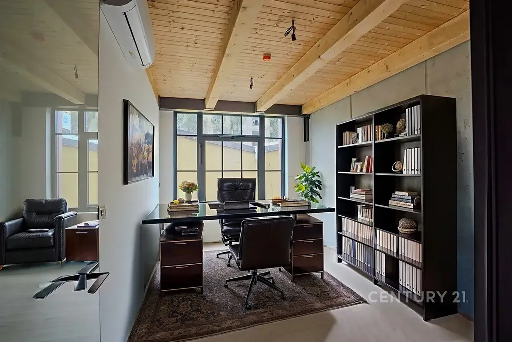 Hledáte unikátní prostor pro Vaši firmu? Chcete zazářit před svými klienty? V tom případě nabízíme k prodeji zcela atypický a jedinečný ateliér s dispozicí 4+kk o celkové výměře 174,64 m2. Tento prostor v nově vzniklém developerském projektu je ideální pro firemní využití, nachází se hned v 1. patře budovy. Dominantou kanceláře je plně otevřený prostor uprostřed ateliéru až do výše 6,5m. Ateliér je nadstandardně vybaven: rekuperací vzduchu, klimatizacemi a předokenními elektro žaluziemi. Teplo v bytě zajišťuje podlahové topení. Je zde položena dřevěná vícevrstvá podlaha bělený dub. Industriální styl celého projektu kombinuje přiznaný beton a původní konstrukci se dřevem, celý dojem podtrhují velkoplošná hliníková okna.