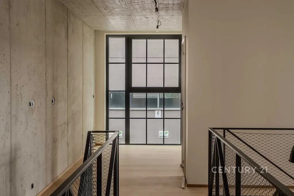 Industriální styl celého projektu kombinuje přiznaný beton a původní konstrukci, celý dojem podtrhují velkoplošná hliníková okna.