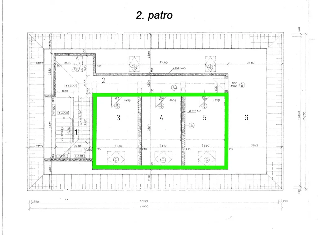 druhém patře, k pronájmu místnosti 3,4,5 - 45 m2 - ostatní jsou společné prostory.