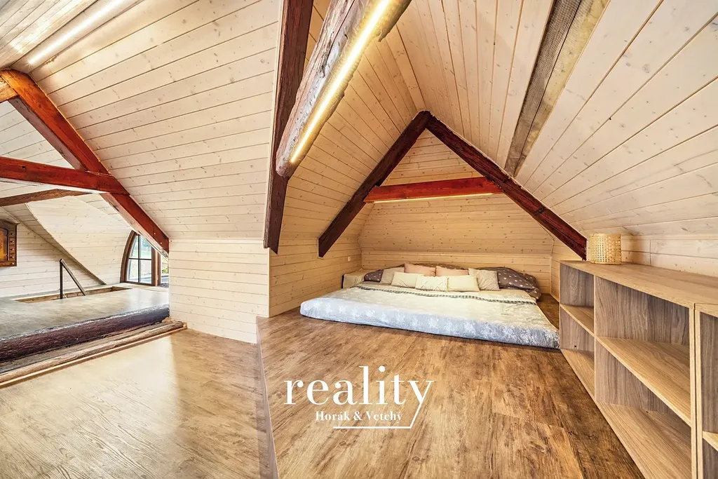 Hlavní obytná část má dispozici 3+1 s podkrovím, kde se nachází útulný prostor pro spaní a otevřená část vhodná pro studovnu, dětský pokoj nebo jiné využití dle potřeb. Součástí nemovitosti je také samostatný vejminek 1+1 s vlastní koupelnou a toaletou, ideální pro vícegenerační bydlení či ubytování hostů, přičemž není propojen s hlavní stavbou. Celková užitná plocha činí 202 m², zastavěná plocha 137 m² a celková rozloha pozemku 946 m².