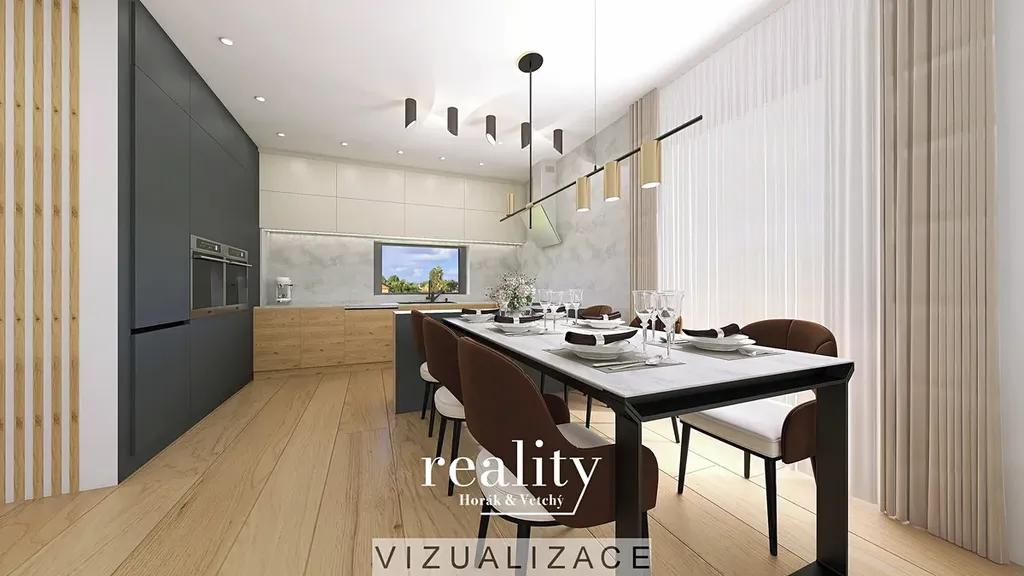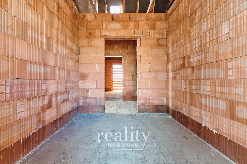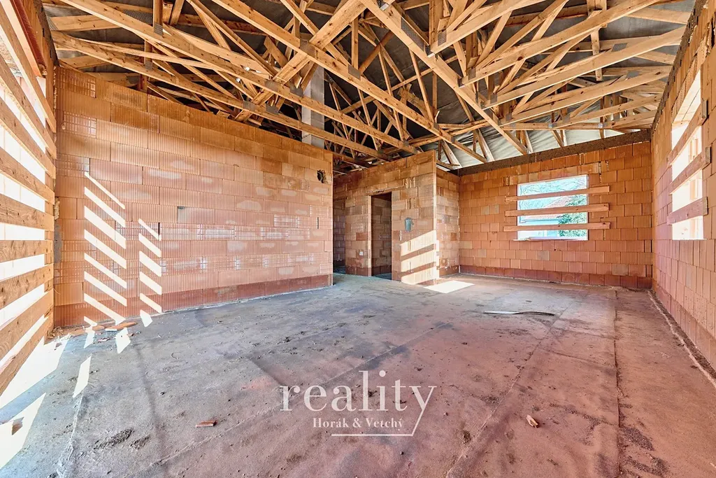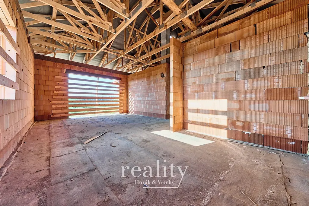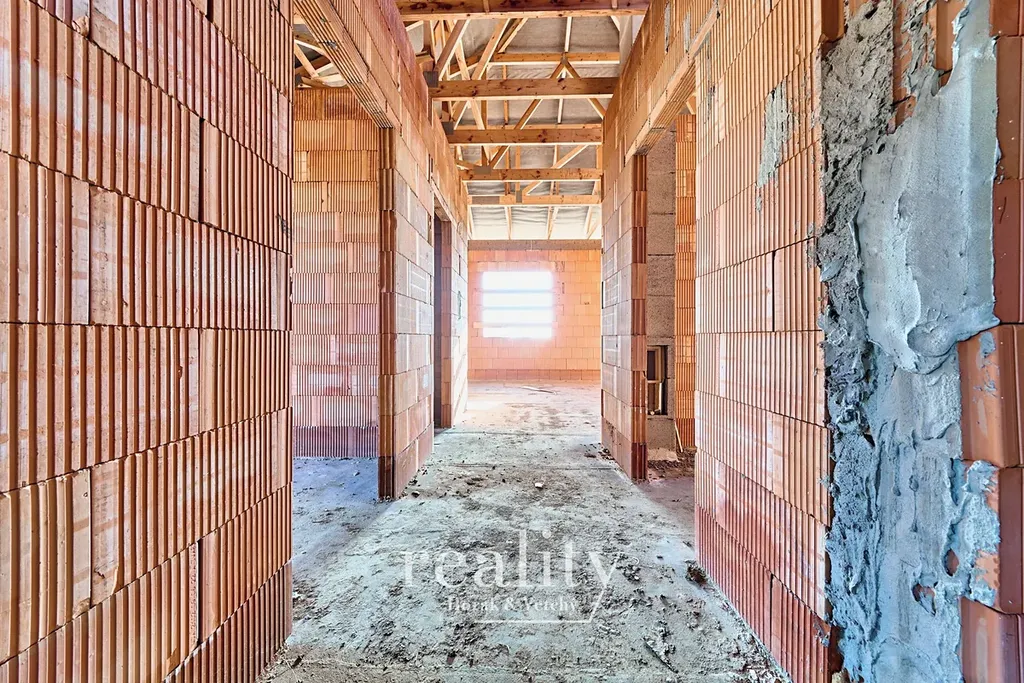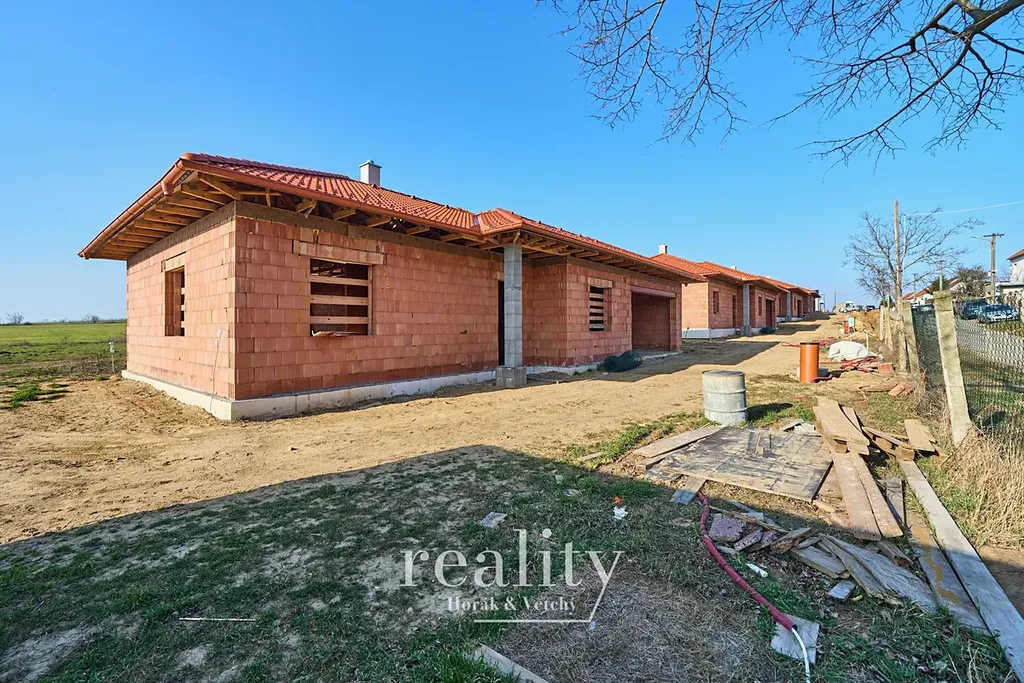Jedná se o moderní jednopodlažní dům typu bungalov s dispozicí 4+kk o užitné ploše 131m2 + 36m2 garáž pro 2 vozidla. Aktuálně se dům prodává jako hrubá stavba na dokončení, po dohodě s investorem je možné dům dokončit dle níže uvedeného standardu. Vlastní RD je navržen tak, aby svým obyvatelům poskytl kvalitní a úsporné bydlení s dostatkem prostoru. Nízkoenergetický standard zaručí moderní 300mm zdivo s plánovaným kontaktním zateplením z EPS tloušťky 200mm, zateplená podlaha i strop, plastová okna s trojskly a podlahové teplovodní topení s tepelným čerpadlem DeDitrich, ohřívající současně i TUV. K dispozici je i komín k případné instalaci krbových kamen.