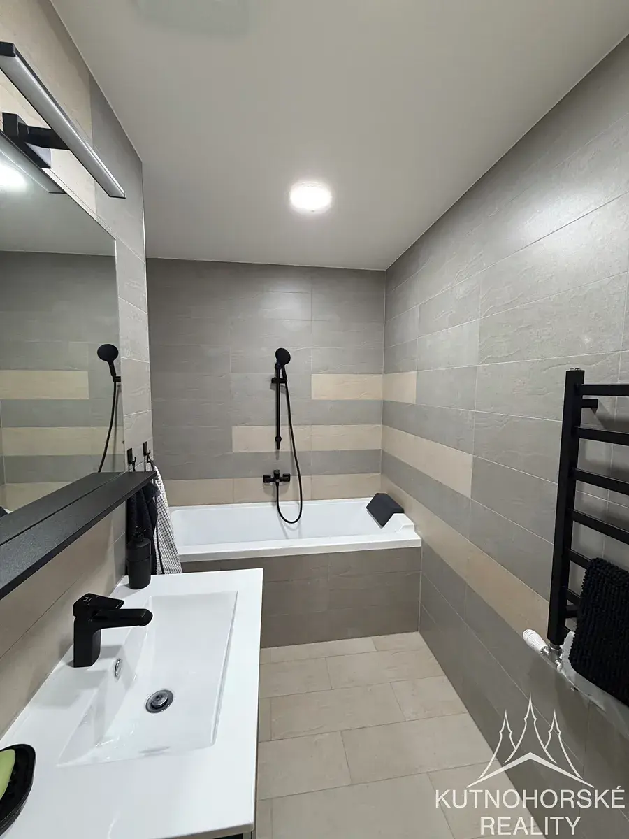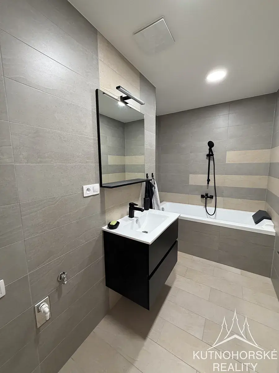 Nová moderní kuchyně se všemi spotřebiči, koupelna s vanou, WC je samostatné.