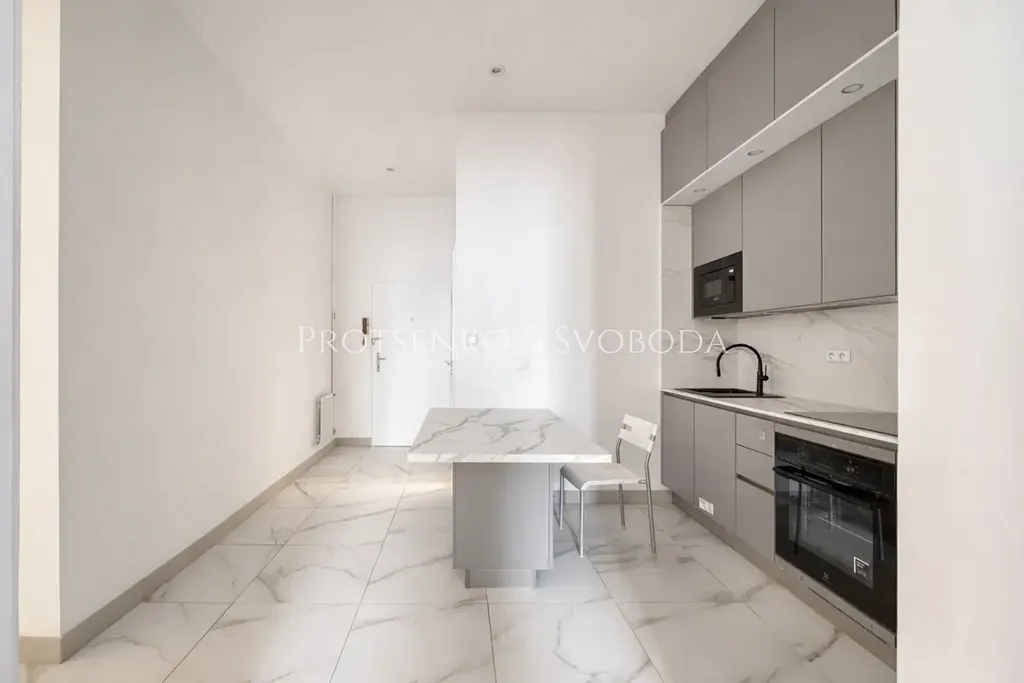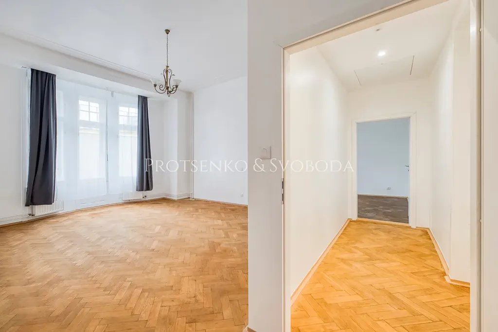 Tento byt prošel kompletní a nákladnou rekonstrukcí. Vše je zcela nové – od moderní kuchyňské linky se spotřebiči až po precizně obroušené původní parkety, které interiéru dodávají noblesu a charakter.