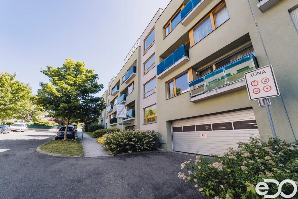 Dispozice bytu je promyšlená a funkční. Obývací pokoj s kuchyňským koutem je orientovaný na východ a nabízí příjemné ranní světlo, zatímco ložnice a dětský pokoj směřují na západ, do klidné ulice. Byt tak působí vzdušně a přirozeně prosvětleně po celý den. K bytu náleží balkon s výhledem do okolní rezidenční zástavby a také soukromá zahrádka, která poskytuje ideální prostor pro odpočinek, dětské hry nebo posezení s přáteli. Praktickým bonusem je sklepní kóje a garážové stání přímo v domě.