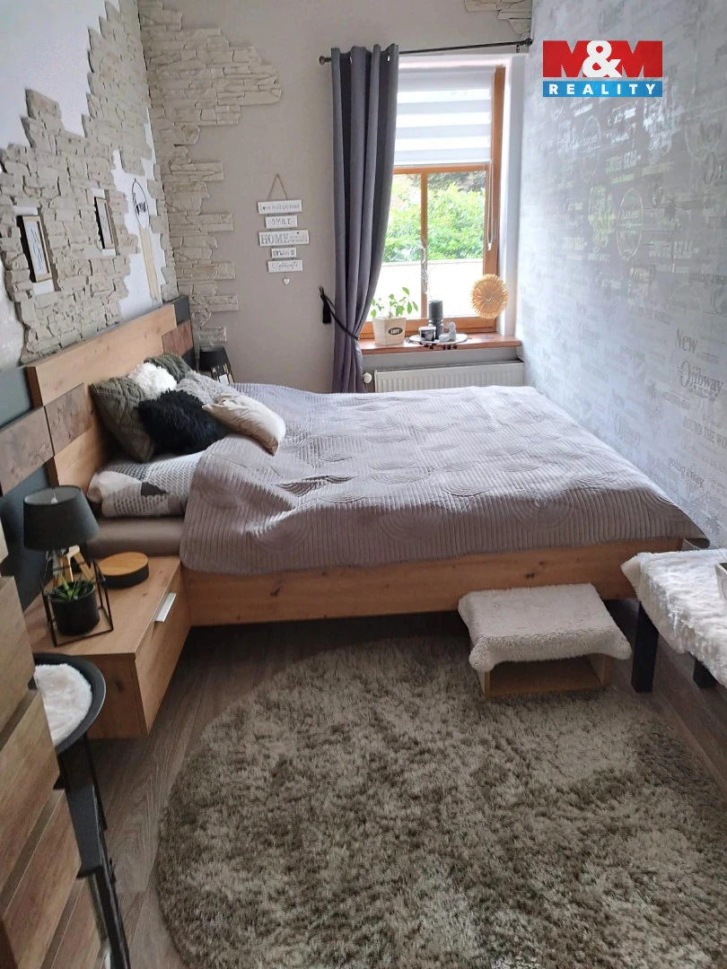 Byt je po rekonstrukci. Vytápění bytu plynovým kotlem a krbovými kamny. Komín je vyvložkován v roce 2014. Byt má plastová okna, novou střechu z roku 2011. Dispozice bytu: vstupní chodba, kde jsou krbová kamna, technická místnost s pračkou a sušičkou, WC, koupelna se sprchovým koutem. Z chodby je vchod odděleně do 2 dětských pokojů a do kuchyně, ze které se vchází do obývacího pokoje.