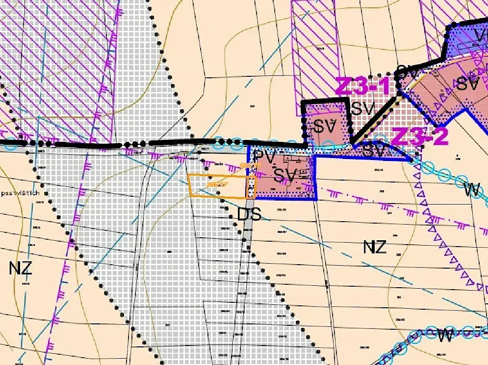 současného územního plánu se pozemky nachází v nezastavěném území v ploše zemědělské-NZ, dopravní infrastruktury-silniční-DS a ploše veřejného prostranství-PV. Zábědov je část města Nový