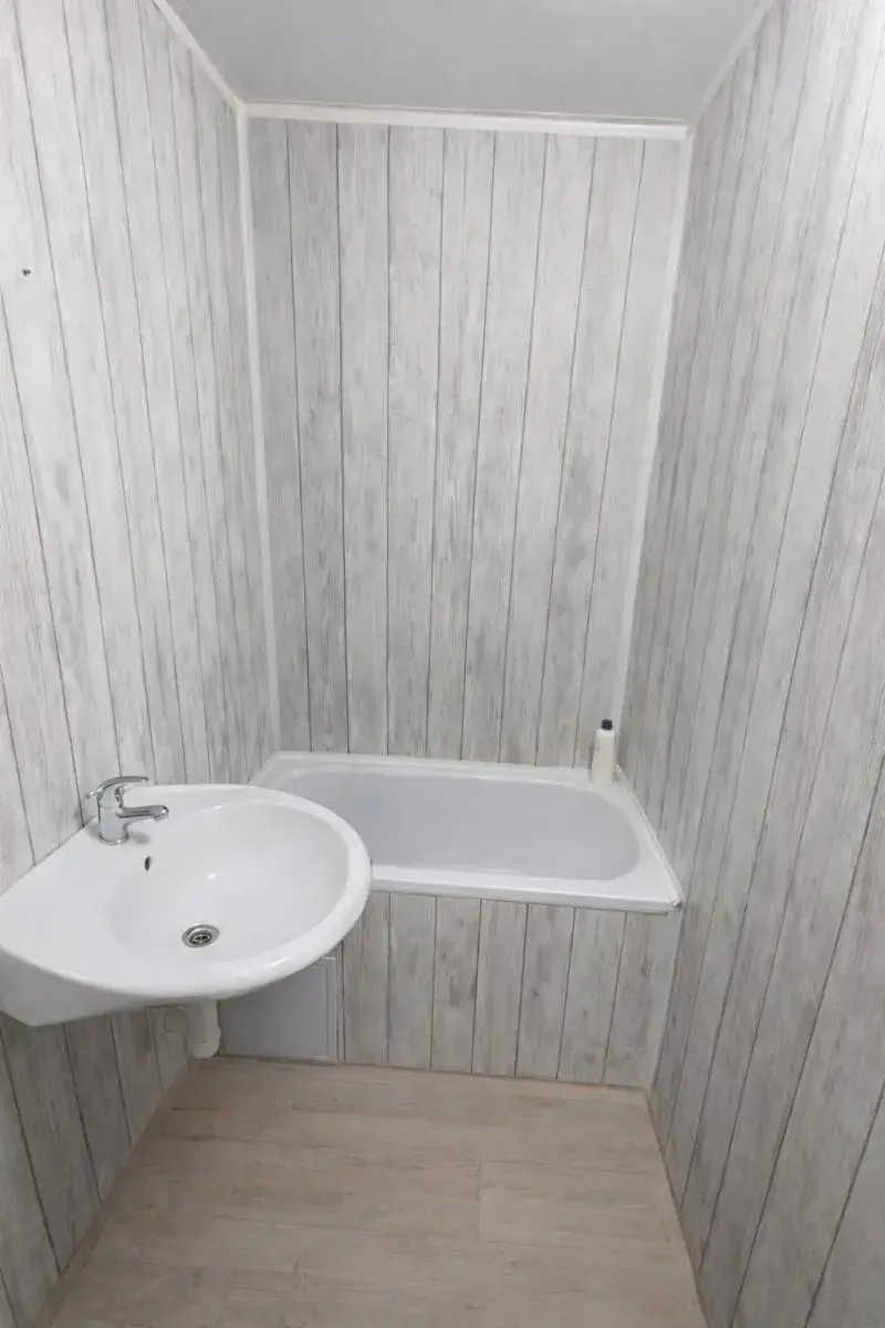 V kuchyni je kuchyňská linka s elektrickými kamny, přípojka na pračku připravena. Koupelna je vybavena vanou a umyvadlem, WC odděleno. Po celém bytě jsou položeny plovoucí podlahy. Vše připraveno k okamžitému nastěhování bez dalších nákladných investic. Byt bude pronajímán bez vybavení.