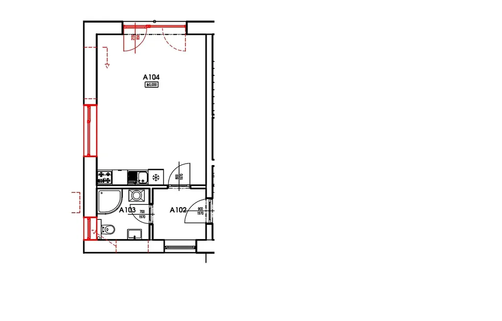 Byty jsou vybaveny praktickou kuchyňskou linkou, která sahá až ke stropu, a která je vybavená indukční varnou deskou a elektrickou troubou. Místnost je zakončená francouzským oknem s výhledem do zeleně. Na okně jsou namontovány předokenní žaluzie, které v místnosti zajistí ticho a tmu.
