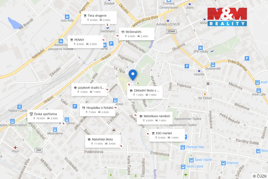 Hledáte bydlení v klidné a vyhledávané lokalitě? Podívejte se na naši nabídku bytu 3+1+2L o ploše 79 m2 v 1. patře panelového domu v lokalitě Teplice, ul. Palackého. Byt prošel rekonstrukcí. V bytě je kuchyňská linka bez spotřebičů. Byt zůstává částečně zařízený nábytkem. Dům je po revitalizaci - plastová okna, zateplení. Klidná lokalita, veškerá občanská vybavenost v místě, dostupnost MHD. V nájemném není započtená záloha na vodu a úklidovou službu. Teplou vodu a teplo zajišťuje plynový kotel v bytě. Elektřinu a plyn si hradí zájemce sám. Vratná kauce ve výši dvou nájmů.