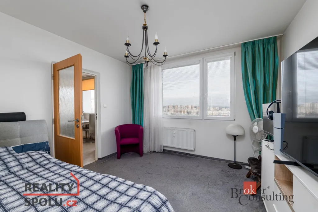 Obývací pokoj je prostorný a dobře uspořádatelný, s přímým vstupem na lodžii, která přirozeně rozšiřuje obytnou část bytu. Otevřený výhled do okolí dodává prostoru vzdušnost a příjemný pocit nadhledu.