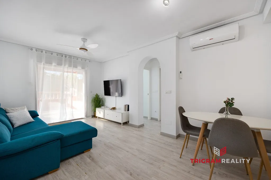 Tento exkluzivní přízemní apartmán 60 m² se 2 ložnicemi, obývacím pokojem s kuchyní a zimní zahradou, a dvěma koupelnami, nacházející se v prestižní a klidné oblasti Aguas Nuevas, jedné z nejvyhledávanějších rezidenčních čtvrtí v Torrevieje, ideální pro ty, kteří hledají vysokou kvalitu života, uživatelský komfort a blízkost moře.