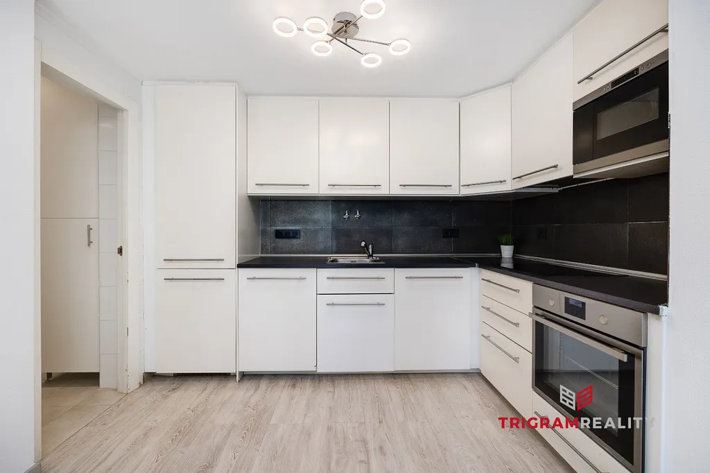 Nemovitost disponuje dvěma prostornými a světlými ložnicemi, kompletní koupelnou a samostatnou toaletou s technickým koutem, vybaveným pračkou, sušičkou a úložným prostorem, což přináší velmi ceněnou funkčnost navíc.