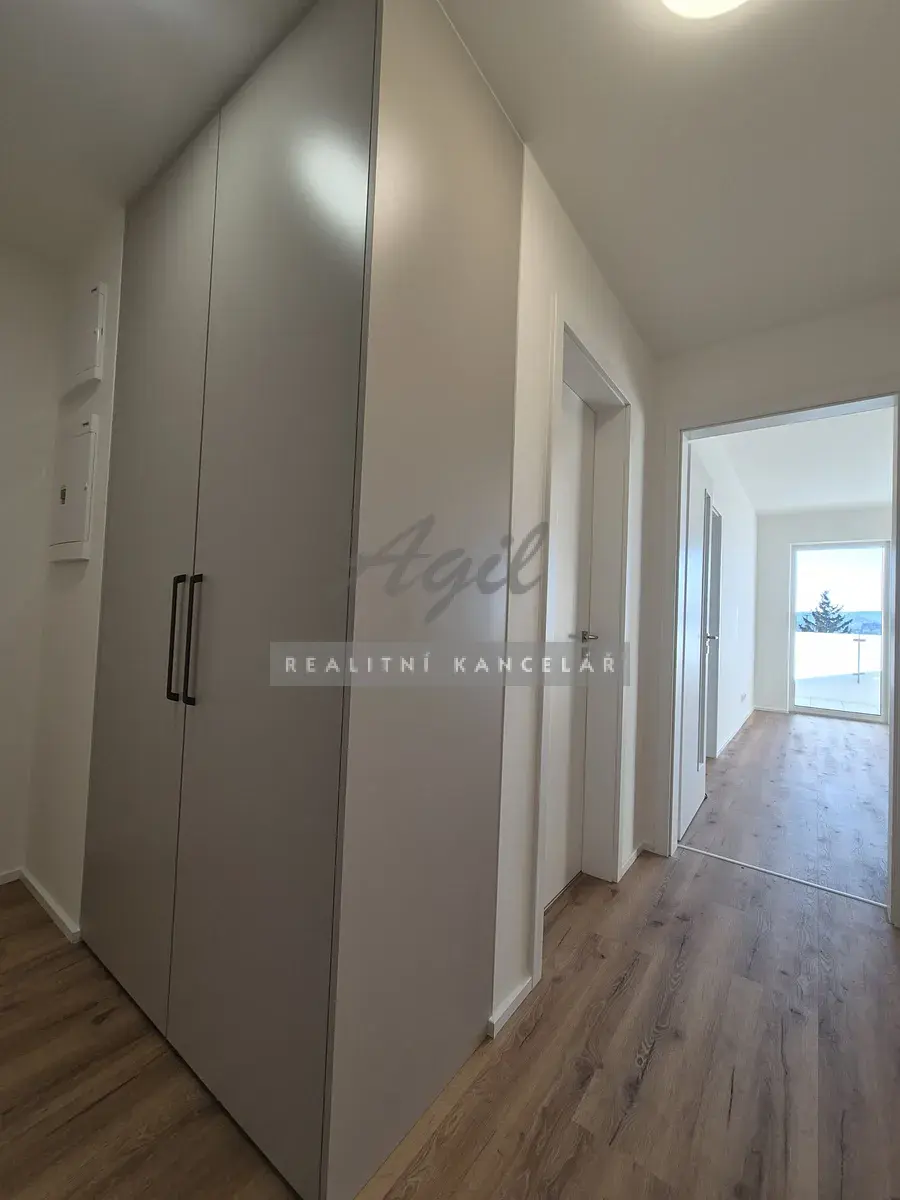 Předsíň 7m2, koupelna 5m2, samostatné WC 3m2, kuchyně s obývacím pokojem 19m2 a se vstupem na lodžii, ložnice 15m2, terasa 9m2, sklep 2m2.