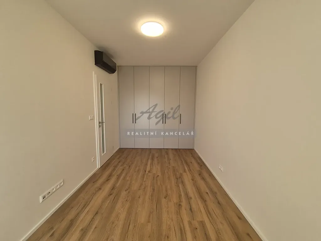 Ložnice – vestavěné skříně, klimatizační jednotka.