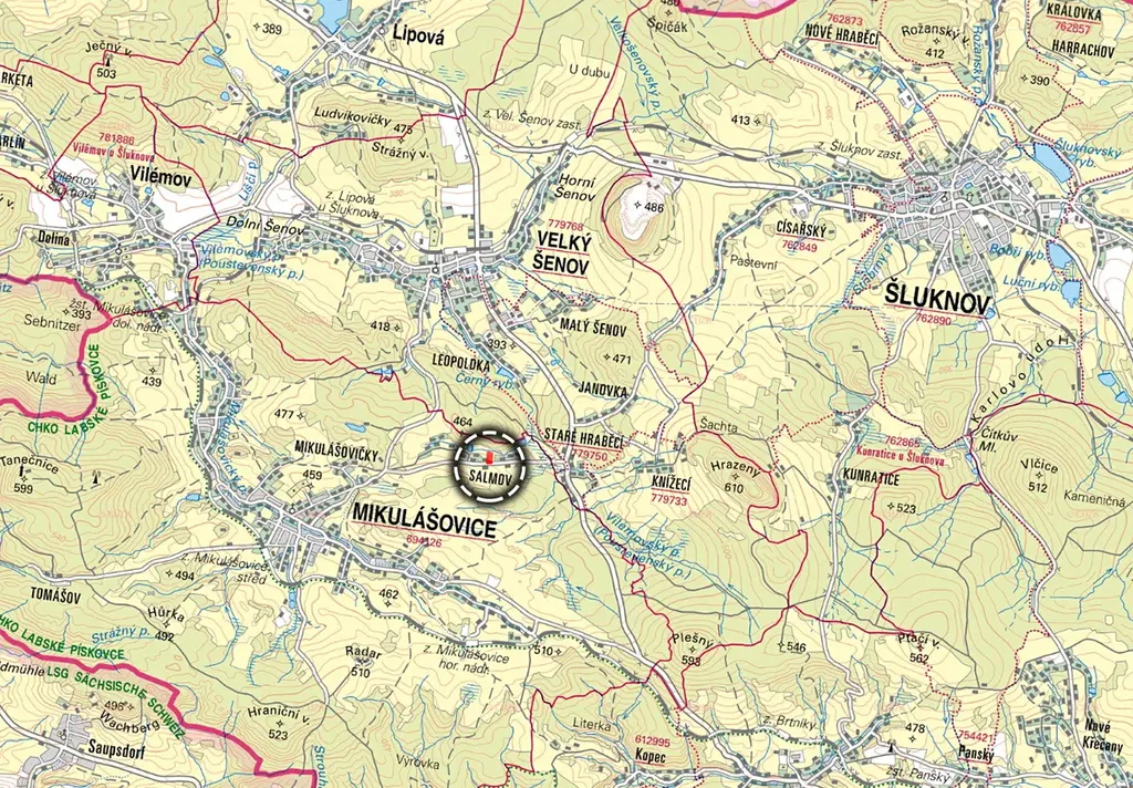K prodeji je pozemek ideální pro chatu či chalupu s velkou zahradou v krásné krajině Severních Čech. Leží v místní části obce Mikulášovice - Salmov. Osada tvořená jen několika domy je dokonalým místem pro toho, kdo si vysnil tiché místo obklopené zelení. Poloha u cesty zároveň zaručuje rychlé spojení do větších Mikulášovic nebo Velkého Šenova.