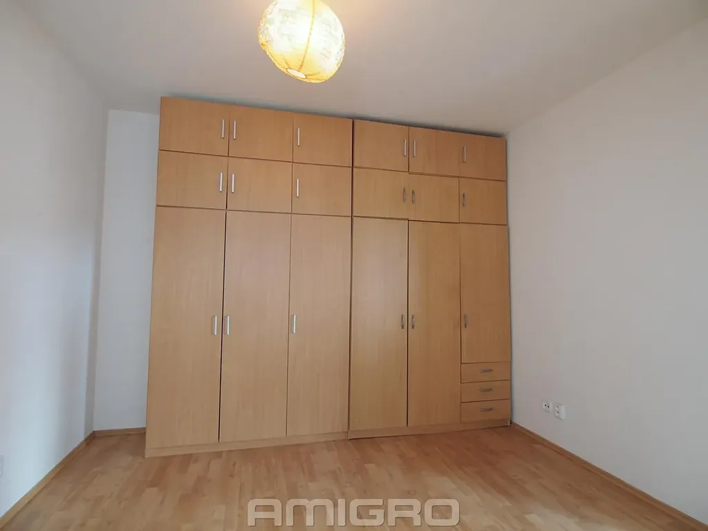 V bytě je kuchyňská linka se spotřebiči (lednice, varná deska, elektrická trouba, digestoř, chladnička, myčka, pračka), šatní skříně v ložnici.