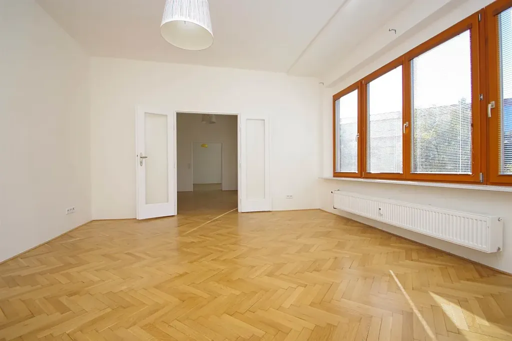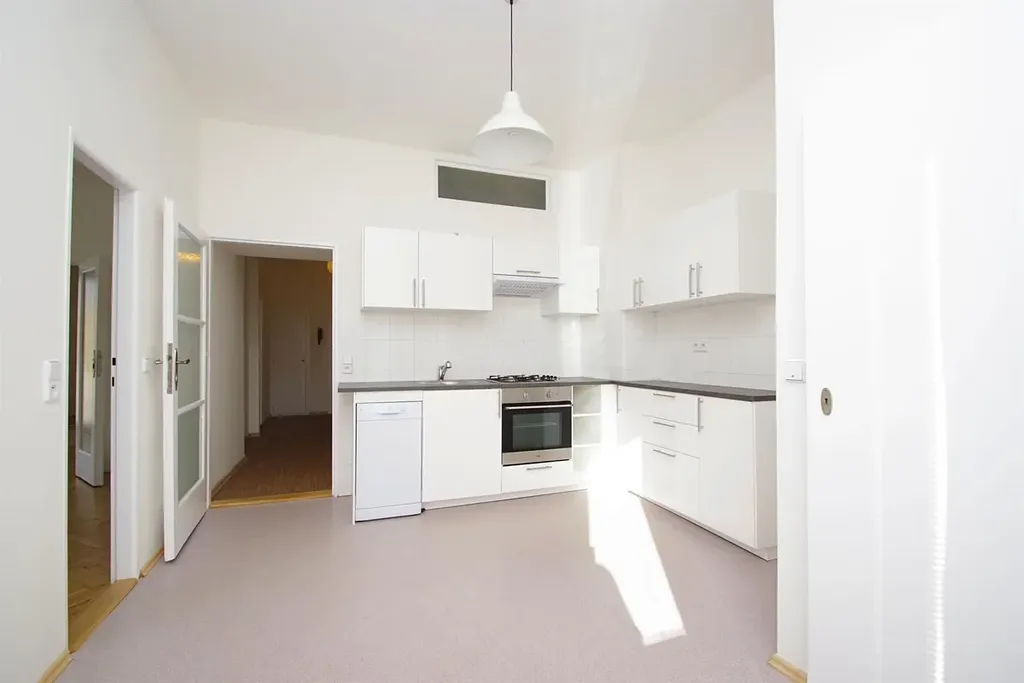 Prostorný byt 3+1 (2 ložnice, 1 koupelna), o ploše 91m2, je situován v 1. patře dobře udržované budovy bez výtahu, v klidné rezidenční lokalitě Praha 10 Vršovice, ulice Volyňská.
