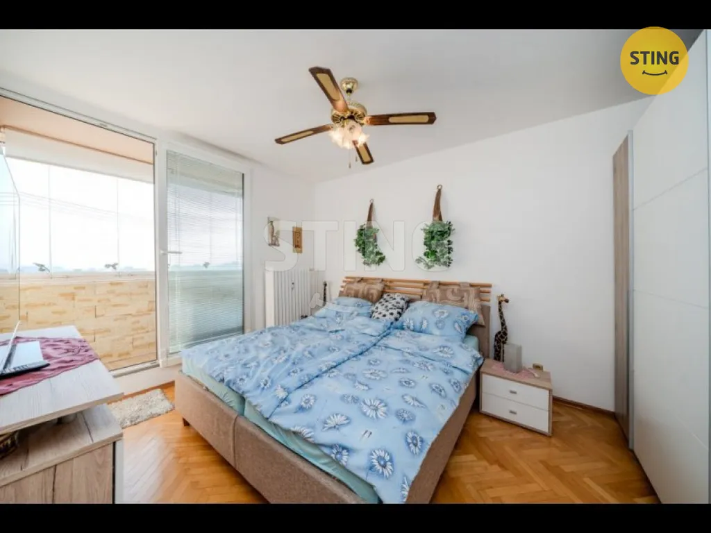 Dominantou bytu je zasklená lodžie, která nabízí krásný výhled a zároveň příjemné místo k posezení během celého roku.