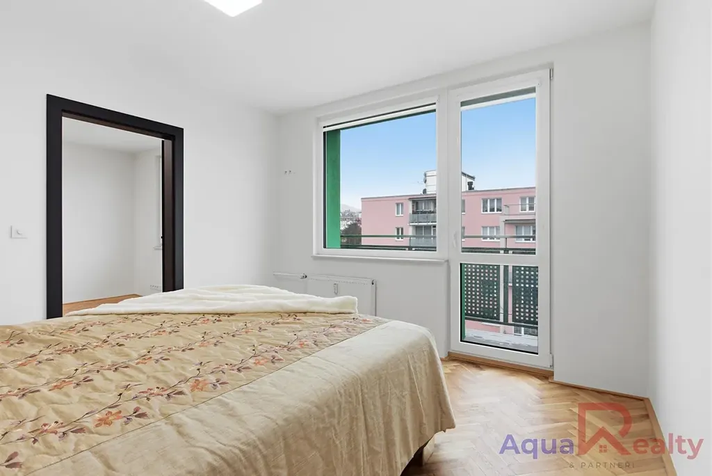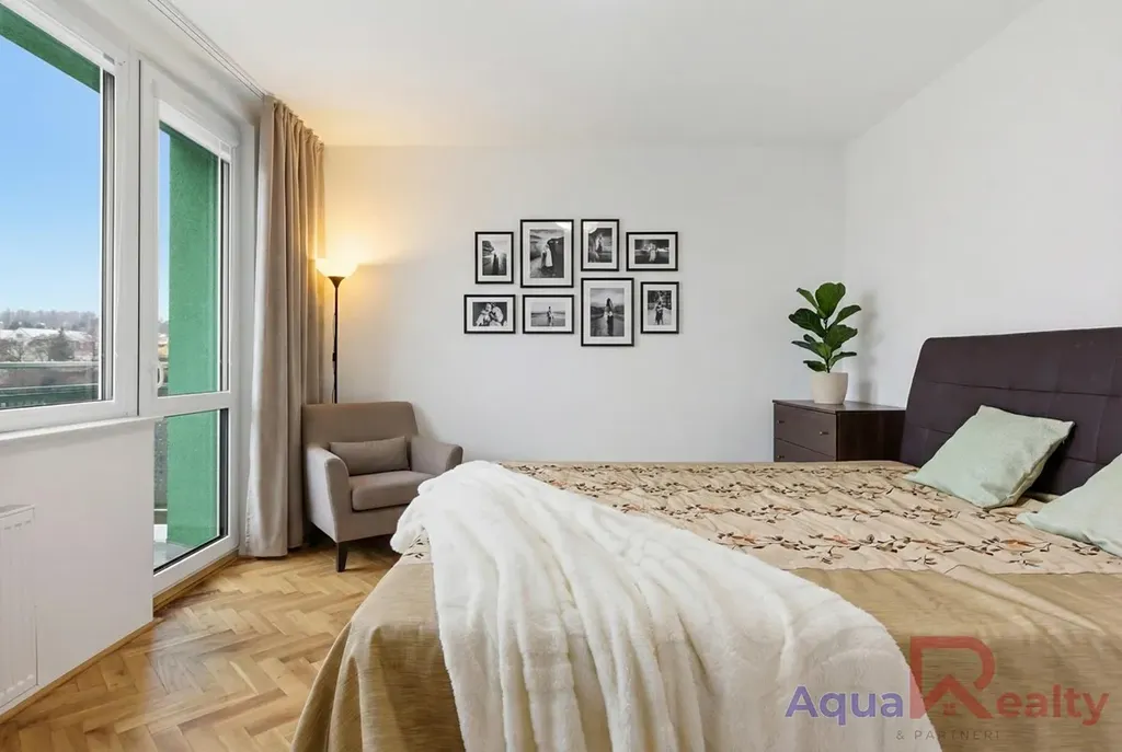 Byt se nachází v 8. patře z 9, což přináší více světla, soukromí a příjemné výhledy. Velkým benefitem jsou také dva balkony, které nabízí prostor pro ranní kávu, bylinky nebo večerní odpočinek. K bytu náleží sklep, takže o praktické úložné místo máte postaráno.