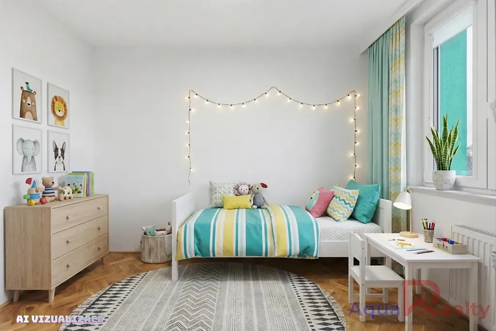 Kuchyň je řešená novou linkou na míru s kvalitními spotřebiči, takže je připravená pro každodenní vaření i rodinné chvíle u stolu, a zároveň nabízí dostatek úložného prostoru. Koupelna je zpracovaná ve velmi aktuálním a módním stylu, kde dominantou je velké LED zrcadlo praktický i vizuálně výrazný prvek, který celý prostor posouvá na vyšší úroveň. Dispozice 3+1 poskytuje dostatek místa pro rodinu, pár i pro ty, kdo chtějí jednu místnost využít jako pracovnu nebo pokoj pro hosty.
