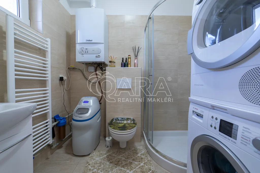 Ohřev vody zajištuje bojler a topení plynový kotel.