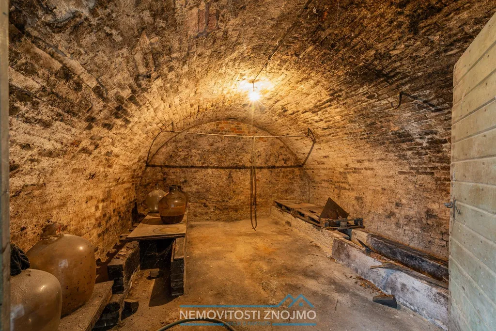 Na obytnou část navazuje hospodářská část s vinným sklepem, který je ze dvora samostatně přístupný. Nachází se zde prostorný dvůr a dále navazující zahrada s krásnými výhledy na zříceninu hradu Dívčí hrady a jezero Nové Mlýny. Zahrada je osázena vzrostlými stromy meruněk a švestek, které v letních měsících poskytují kromě ovoce i příjemný stín.