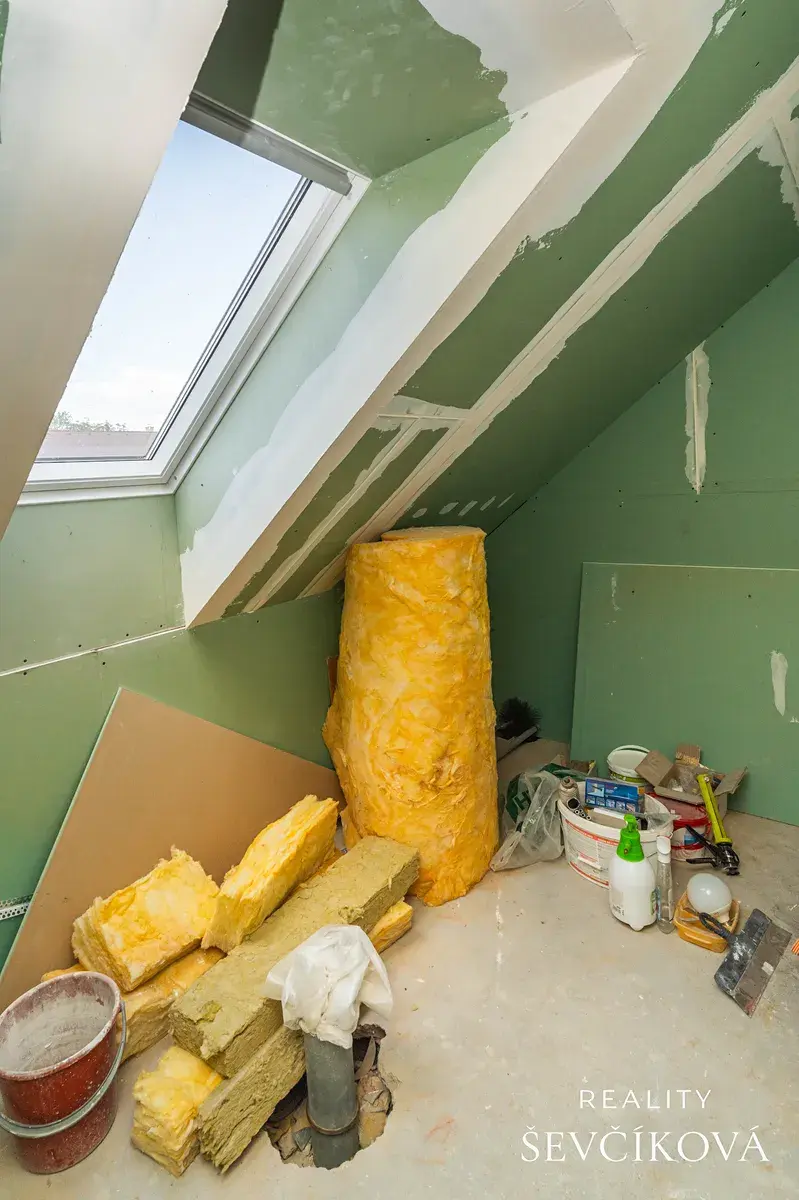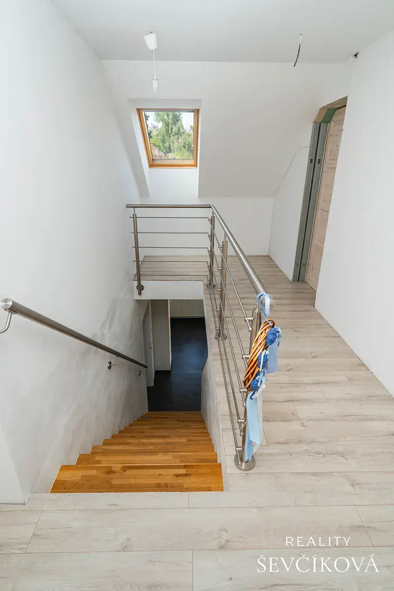 Interiér je kompletně zrekonstruován, výjimkou je koupelna v patře, připravená na dokončení podle představ nového majitele. Spodní koupelna je funkční a v dobrém stavu, přesto s ohledem na dnešní trendy lze do budoucna uvažovat o modernizaci.